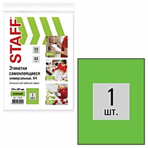 Бумага самоклеящаяся 210*297мм 50л зеленая 1деление, 80г/м2 Staff