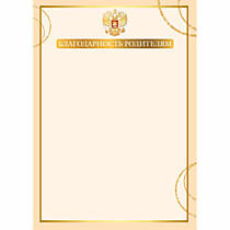 Грамота "Благодарность родителям" А4 золото, эконом Квадра (9281)